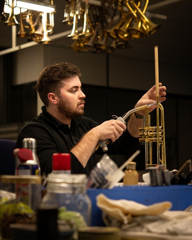 Onze reparatie-afdeling voor blaasinstrumenten is de plek waar vakmanschap en passie samenkomen. Onze ervaren en gediplomeerde reparateurs beschikken over diepgaande kennis van alle soorten blaasinstrumenten. Met uiterste precisie en gebruik van hoogwaardige materialen zorgen zij ervoor dat elk instrument weer in topconditie wordt gebracht. Of het nu gaat om kleine aanpassingen, een grondige onderhoudsbeurt of complexe reparaties, jouw instrument is bij ons in de beste handen.