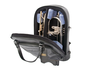 Etui Trompet Adams, Voor 1 trompet & 1 Bugel, Deluxe, leer, met wieltjes
