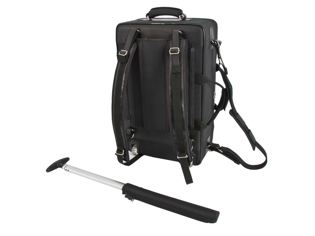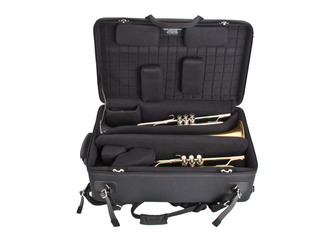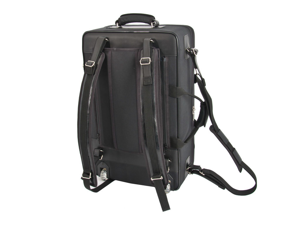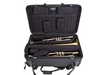 Deze Marcus Bonna koffers zijn ontworpen voor drie trompetten. Het koffer is gemaakt van een stevig glasvezel geraamte dat bekleed is met duurzaam nylon. De binnenkant is voorzien van 1cm dik foam en een zachte synthetische voering. De trompetten passen perfect met de tussenwanden en de 15 modulaire blokken. Dit koffer is voorzien van een trolley systeem.